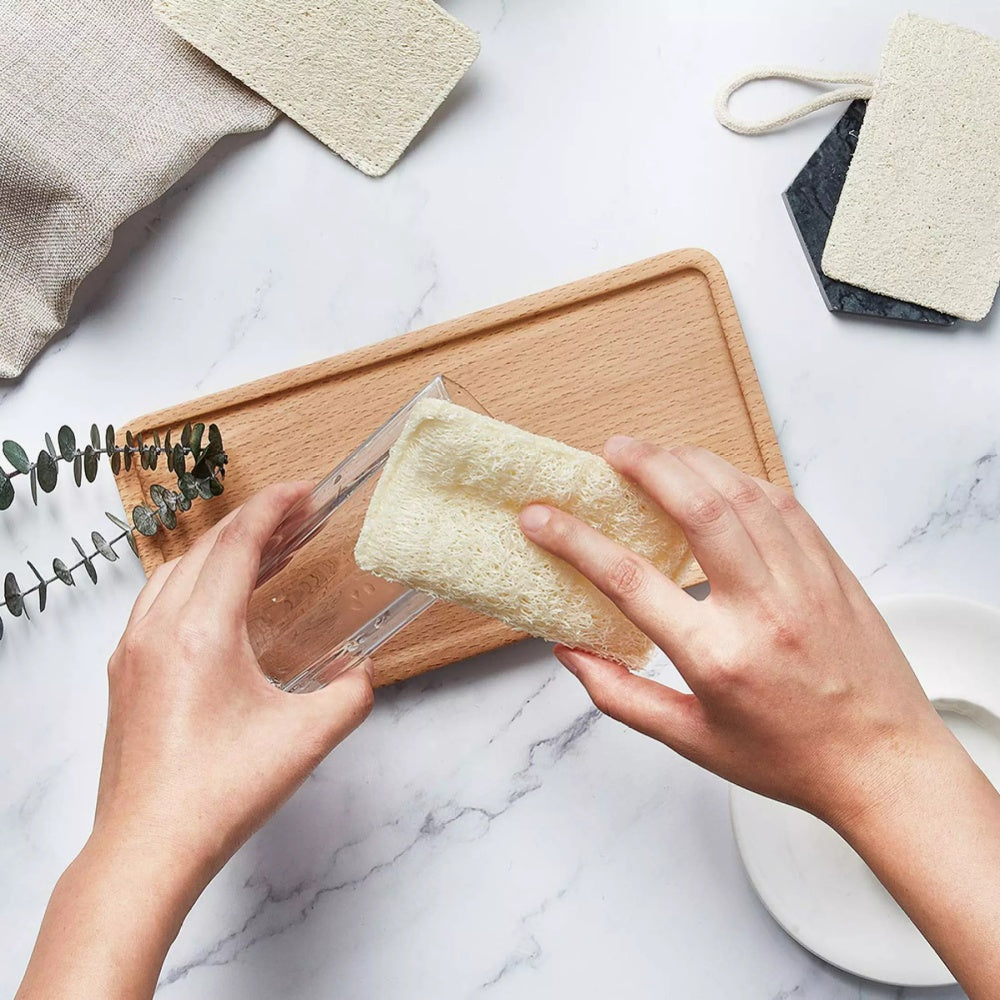 ● Protect pans & dishes: Loofah fibrous are soft but have enough scrubbing power to get all the grease and grim off without scratching your pots, pans dishes or any surfaces.